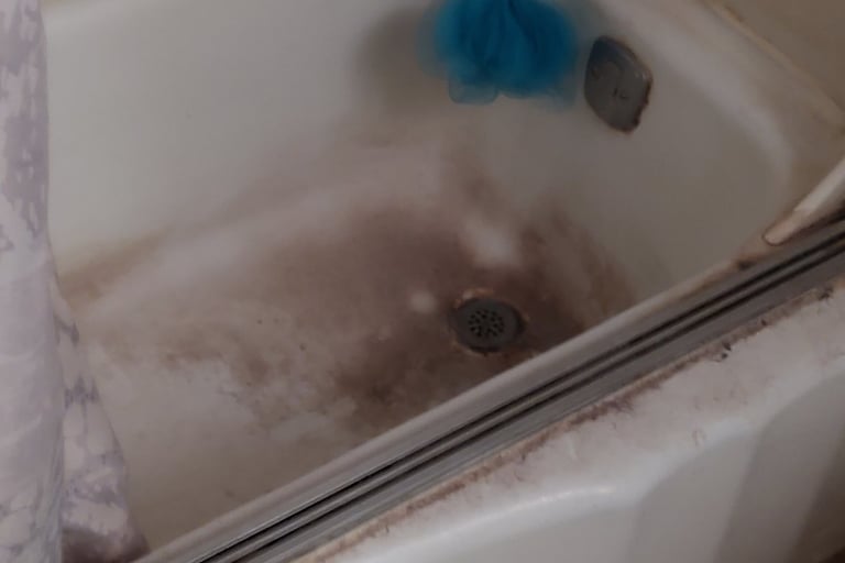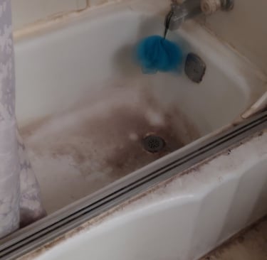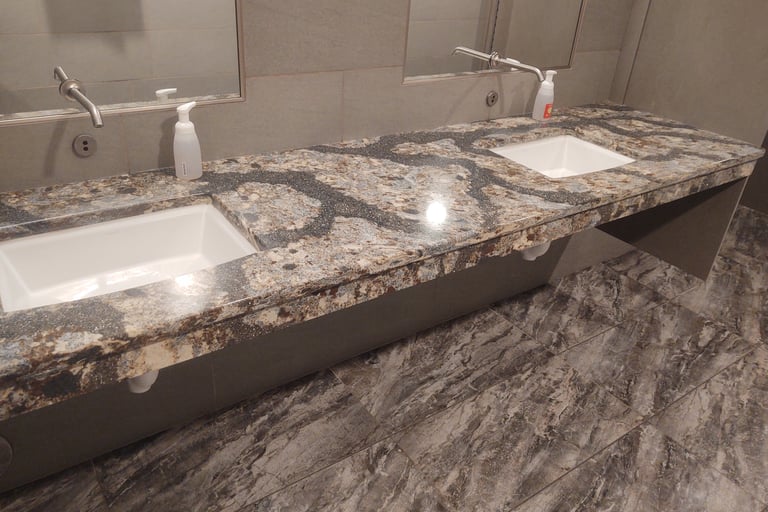Here we have some stone countertops I used to clean. it’s easy to get hard water stains on this surface type, and it can be hard to remove. consistent upkeep is crucial to keep natural stone looking like new. The first time I cleaned these, it took me much, much longer than 3x/week upkeep. I was wiping these down in 5-10 mins with these results. sinks and mirrors included. cleaning the whole bathroom was around 20 mins.