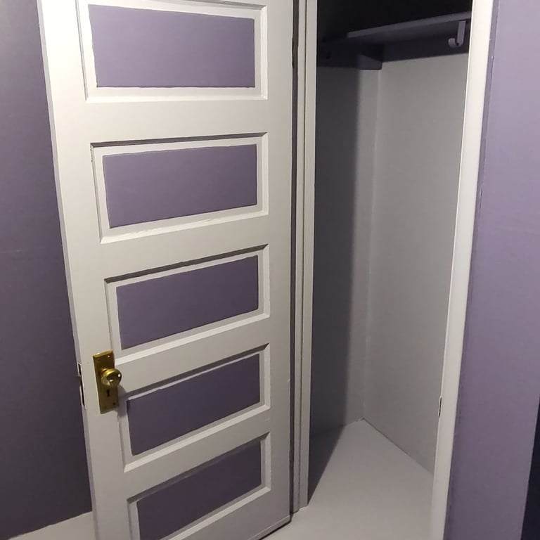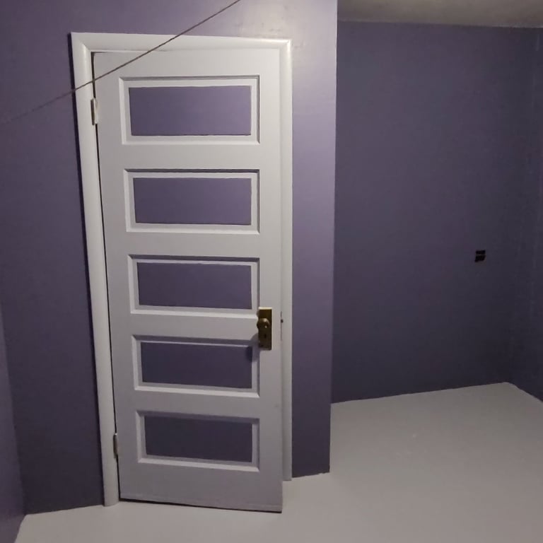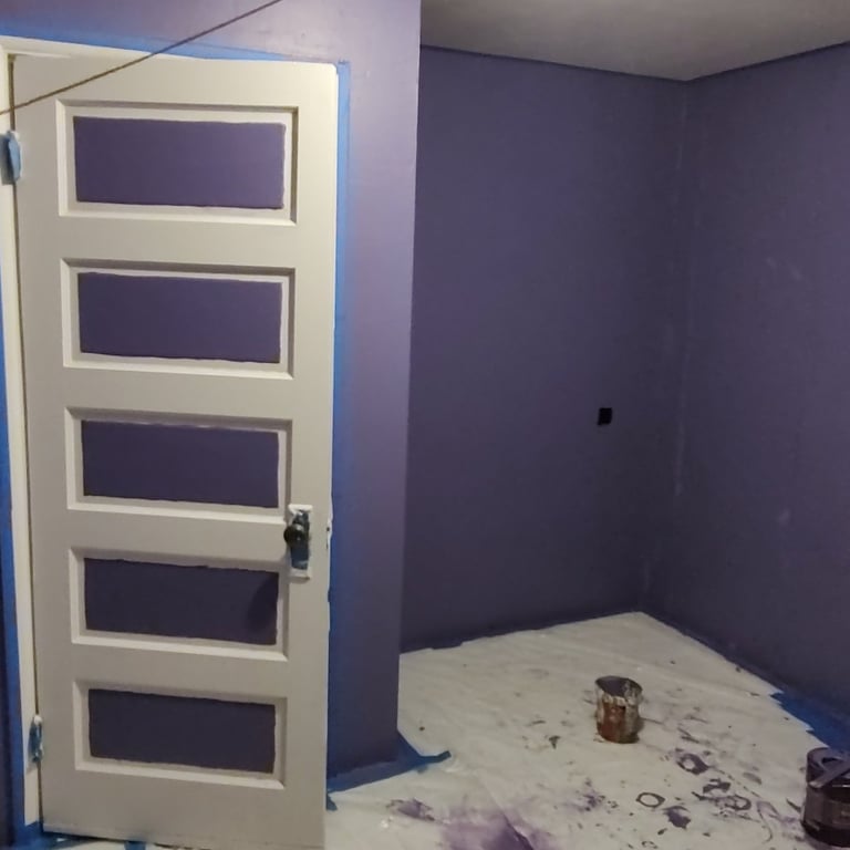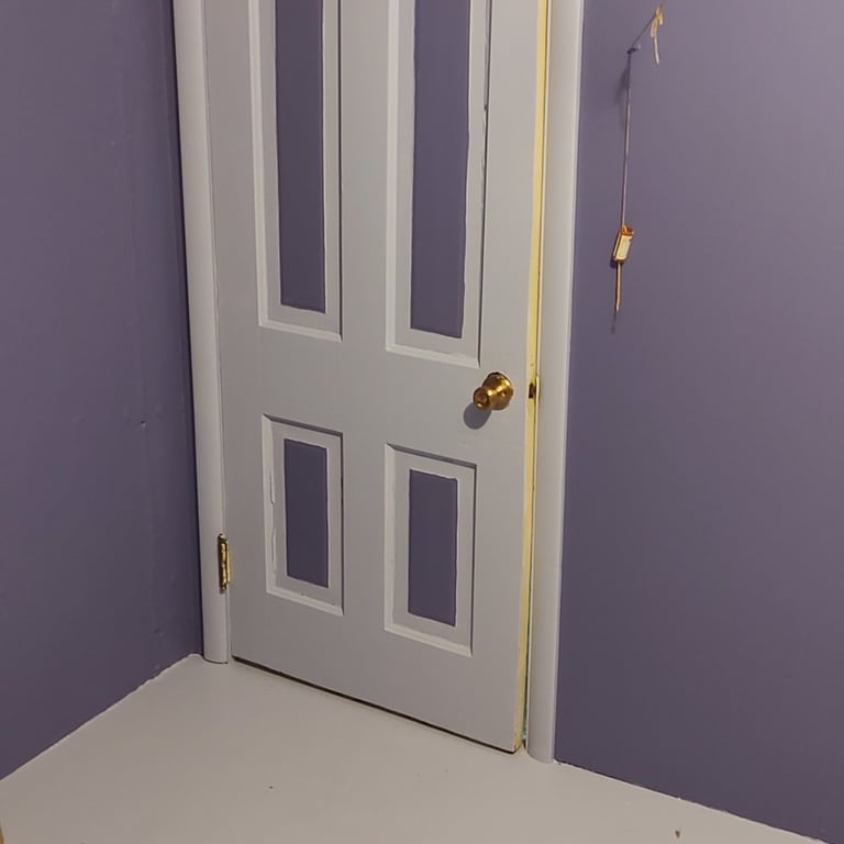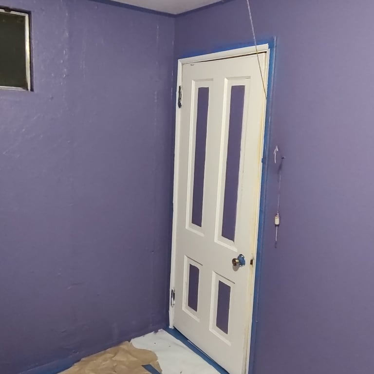 This is a room in a home that was smoked in. To remove cigarette smell from a home, you have to get rid of it’s residue. once its removed, the walls need to be sealed so the smell cant bleed back through. (it absorbs into the wall itself) The walls need cleaned, primed, then painted in this scenario. In this room, I wanted to do a color that was fun and I like purple. It took a long time, around 30 hrs total.